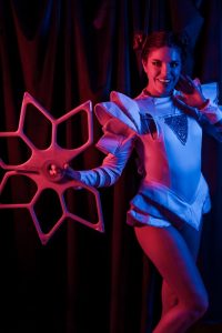 With dual swords glowing in brilliant LED light, Ali Cat delivers a high-energy act that combines masterful weaponry with captivating visual effects. As her swords twirl and slice through the air, the dazzling lights pulse with every motion, creating an unforgettable performance filled with intensity and precision.